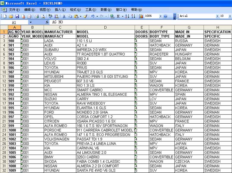 车身EXCEL数据表_DEMO